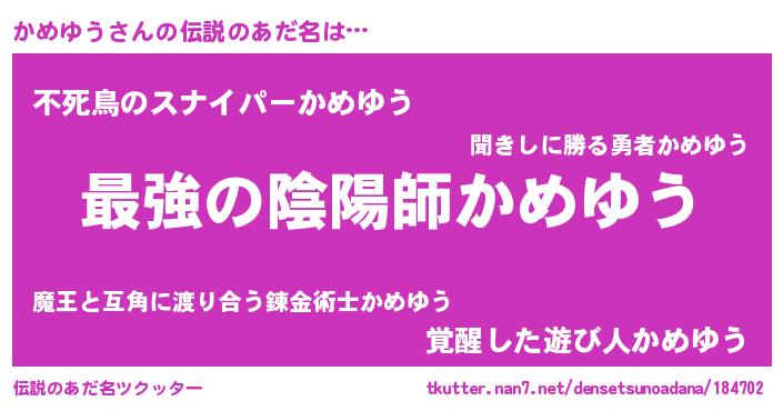 | 意味不明あだ名 | 『かめゆうフォーエバー』『自称かめゆう』 |