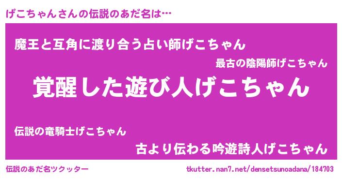 | ヘコむあだ名 | 『げこっちょ』『げこちゃん(爆)』 |