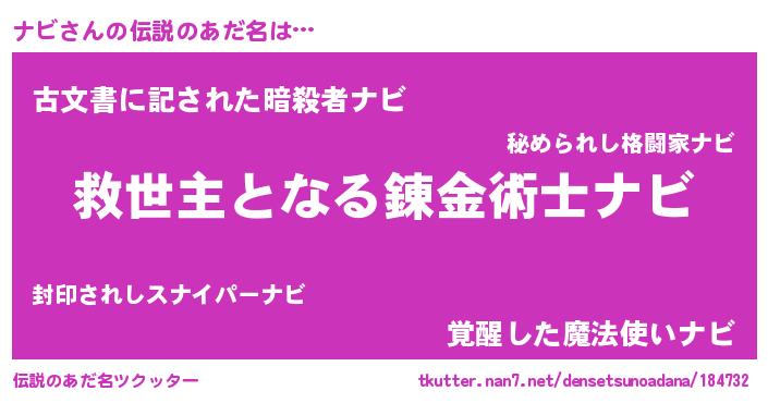 | ヒーロー風カッコイイあだ名 | 『慈愛の使者ナビ』『ネオナビ』 |