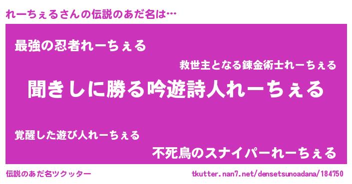| 意味不明あだ名 | 『自称れーちぇる』『永久保存れーちぇる』 |