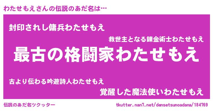 | 意味不明あだ名 | 『自称わたせもえ』『ペロリンわたせもえ』 |