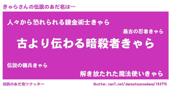 | 胡散臭い通販商品みたいなあだ名 | 『来世でも幸せになれる健康食品…その名も「きゃら」』 |