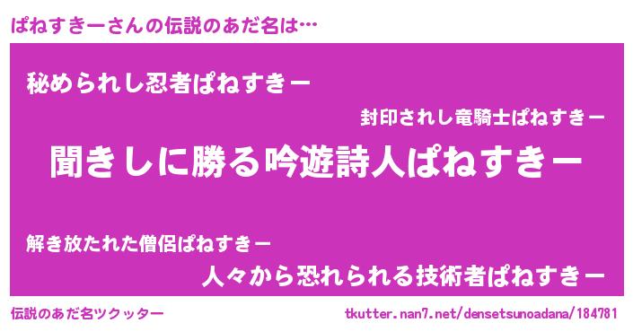 | 意味不明あだ名 | 『永久保存ぱねすきー』 |