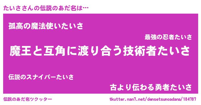 | ヒーロー風カッコイイあだ名 | 『友情の使者たいさ』『仮面タイダー』 |