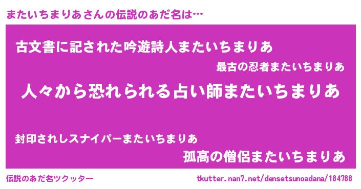 | ヒーロー風カッコイイあだ名 | 『友情の使者またいちまりあ』 |