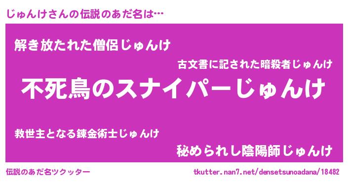 | 胡散臭い通販商品みたいなあだ名 | 『モテモテ間違いなし霊験あらたかなお札…その名も「じゅんけ」』 |