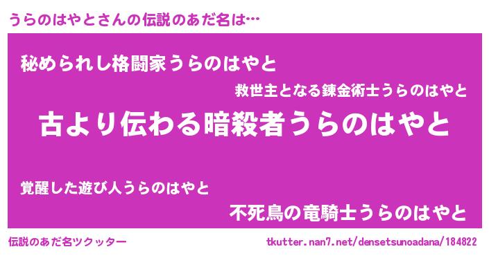 | 女子向けラノベタイトル風あだ名 | 『うらのはやとアンティーク』 |