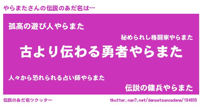 | ヘコむあだ名 | 『やらまた(震え声)』『やらっぺ』 |