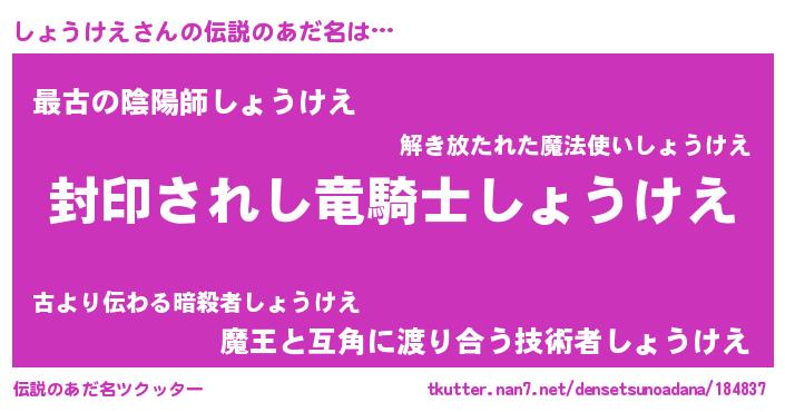 | ヒーロー風カッコイイあだ名 | 『スーパーショウケエ』『魔戒騎士ショ』 |