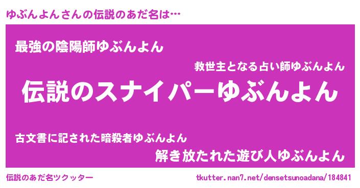 | 意味不明あだ名 | 『住所不定無職ゆぶんよん(84歳)』 |