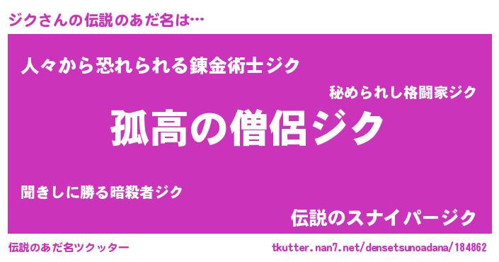 | ヒーロー風カッコイイあだ名 | 『ウルトラ戦士ジク』『黄金騎士ジク』 |