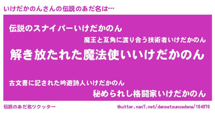 | 意味不明あだ名 | 『自称いけだかのん』 |