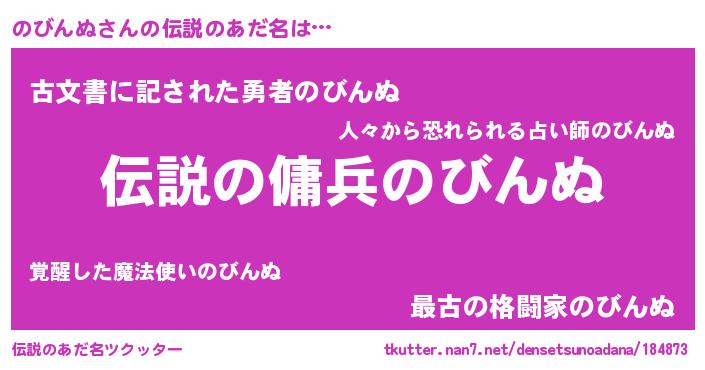 | 意味不明あだ名 | 『住所不定無職のびんぬ(53歳)』 |