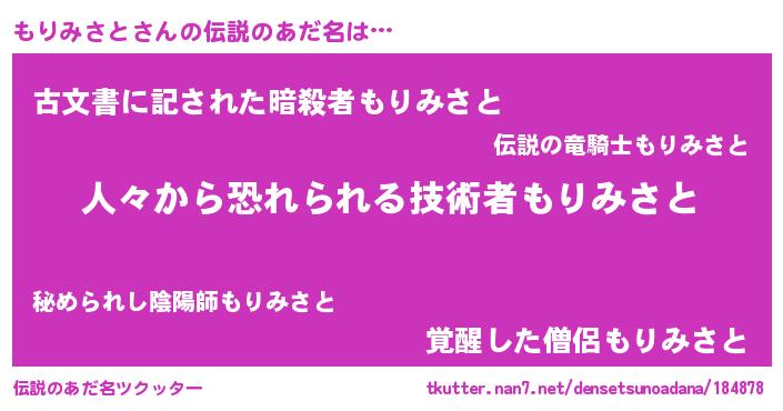 | ヘコむあだ名 | 『もりみさと(小並感)』『もりっ子』 |
