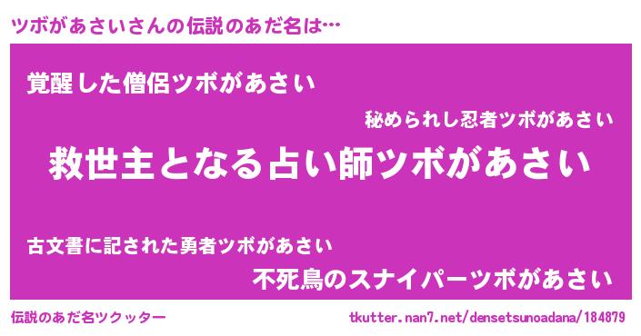 ヒーロー風カッコイイあだ名 | 『仮面ツボダー』『最強戦士ツボガアサイ』 |