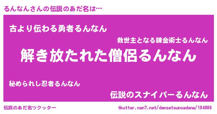 | 意味不明あだ名 | 『とにかく怪しいるんなん』 |