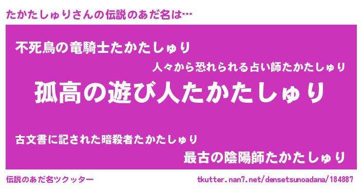 | 意味不明あだ名 | 『自称たかたしゅり』 |