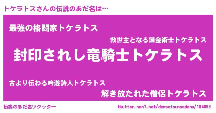 | ヒーロー風カッコイイあだ名 | 『スーパートケラトス』『炎刃騎士トケ』 |