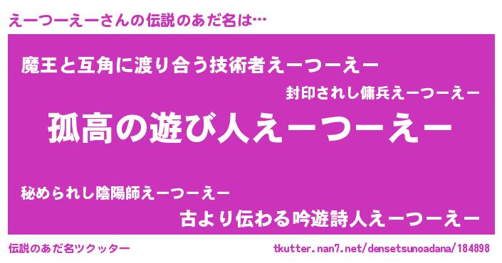 | ヘコむあだ名 | 『えーっちょ』『えーつーえー(小並感)』 |