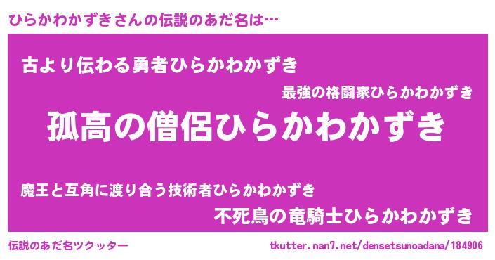 | 胡散臭い通販商品みたいなあだ名 | 『信頼と実績のネックレス…その名も「ひらかわかずき」』 |