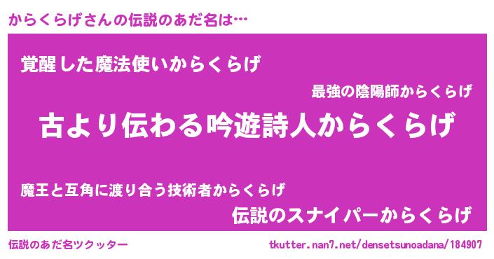 | 男性向けラノベタイトル風あだ名 | 『転生したらからくらげだった件』 |