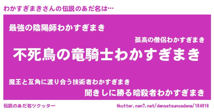 | ヒーロー風カッコイイあだ名 | 『スーパーワカスギマキ』『銀牙騎士ワカ』 |