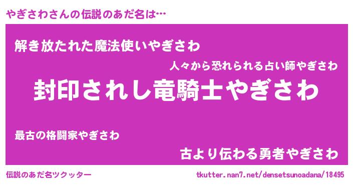| 意味不明あだ名 | 『つくし科やぎさわ属』『自称やぎさわ』 |