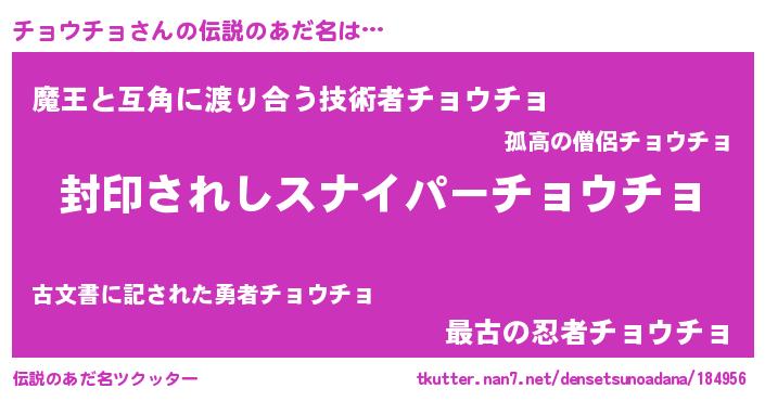 | ポケモン風あだ名 | 『チョチュウ』『チックウザ』 |