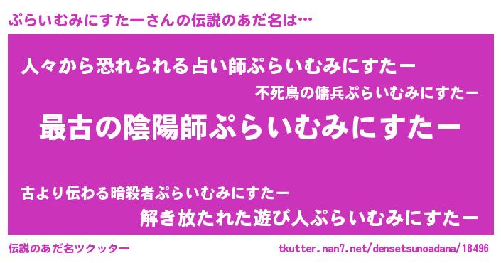 | 意味不明あだ名 | 『ぷらいむみにすたーフォーエバー』 |