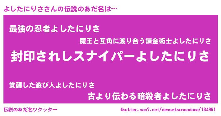 | 胡散臭い通販商品みたいなあだ名 | 『億万長者になれる霊験あらたかなお札…その名も「よしたにりさ」』 |