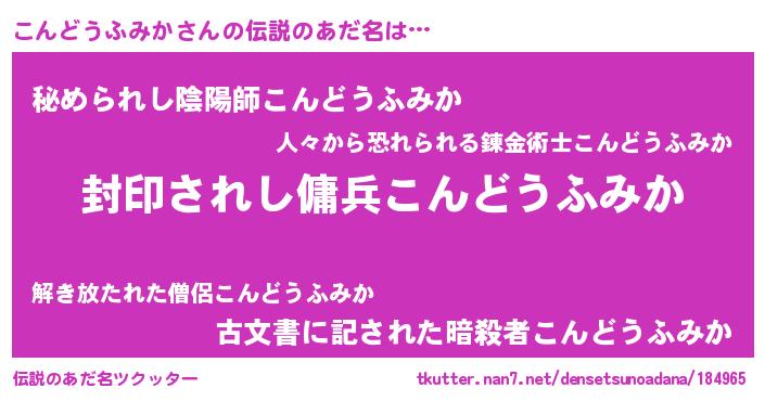 | 意味不明あだ名 | 『住所不定無職こんどうふみか(53歳)』 |