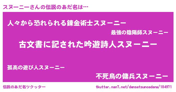 | ヘコむあだ名 | 『スヌーニー(小並感)』『スヌもー』 |