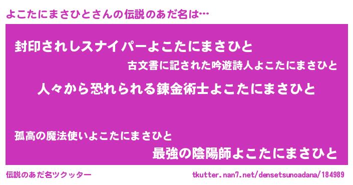 | 肩書あだ名 | 『よこたにまさひと上級大将』 |