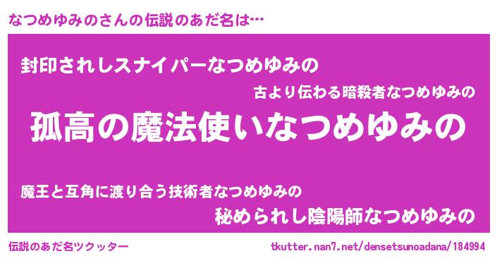 | 欧米人風あだ名 | 『アンジェラ・なつめゆみの』 |
