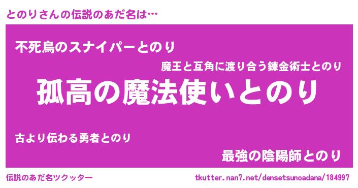 | 意味不明あだ名 | 『とにかく怪しいとのり』『自称とのり』 |