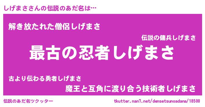 | 男性向けラノベタイトル風あだ名 | 『転生したらしげまさだった件』 |