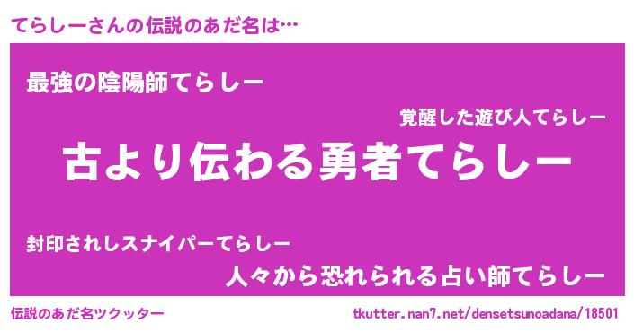 | 意味不明あだ名 | 『住所不定無職てらしー(81歳)』 |