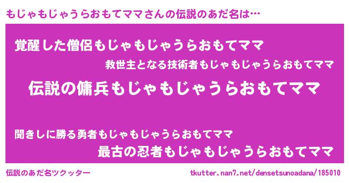 | 意味不明あだ名 | 『住所不定無職もじゃもじゃうらおもてママ(62歳)』 |