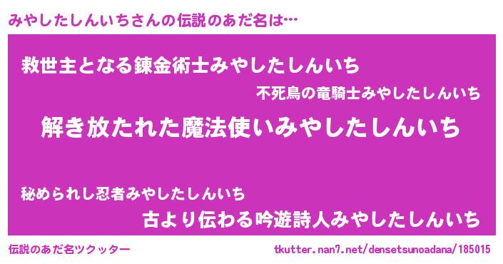 | ヒーロー風カッコイイあだ名 | 『幻影騎士ミヤ』『ネオミヤシタシンイチ』 |