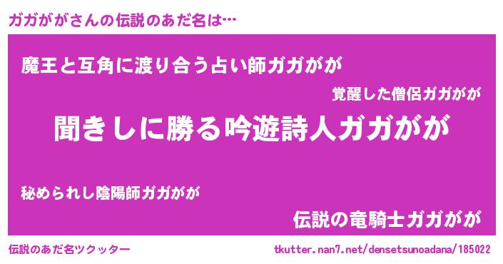 | 男性向けラノベタイトル風あだ名 | 『ガガががという概念が存在しない退屈な世界 』 |