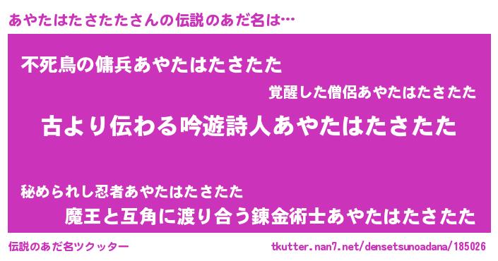 | ヒーロー風カッコイイあだ名 | 『ネオアヤタハタサタタ』『仮面アヤダー』 |