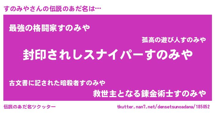 | 女子向けラノベタイトル風あだ名 | 『すのみやストレイドッグス』 |