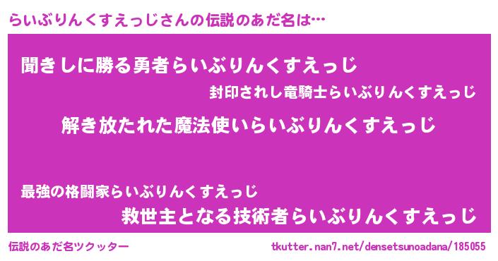 | 胡散臭い通販商品みたいなあだ名 | 『伝統あるサプリメント…その名も「らいぶりんくすえっじ」』 |