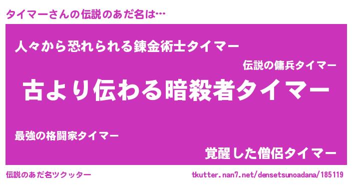 | 意味不明あだ名 | 『永久保存タイマー』『自称タイマー』 |