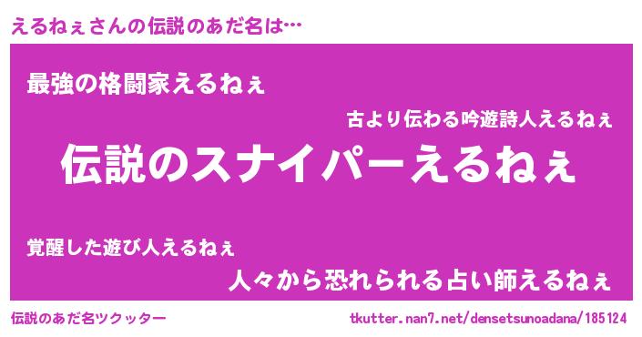 | 胡散臭い通販商品みたいなあだ名 | 『必ず成功する霊験あらたかなお札…その名も「えるねぇ」』 |