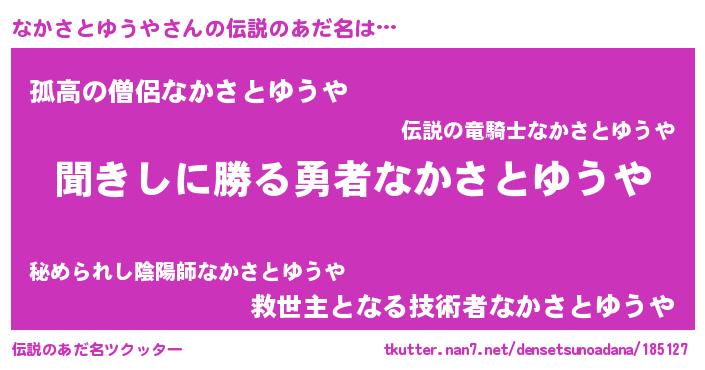 | 意味不明あだ名 | 『住所不定無職なかさとゆうや(93歳)』 |