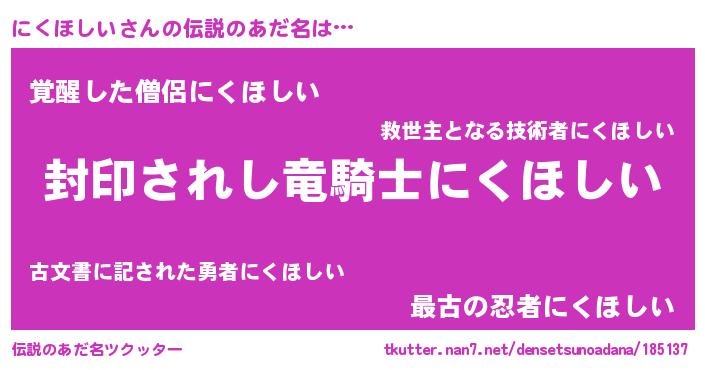 | ヒーロー風カッコイイあだ名 | 『究極戦士ニクホシイ』『仮面ニクダー』 |
