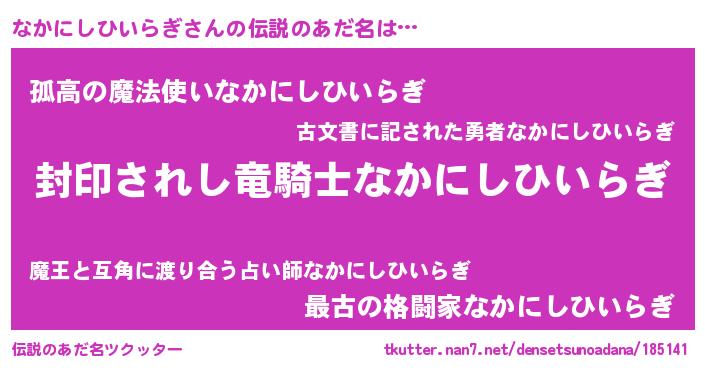 | 男性向けラノベタイトル風あだ名 | 『Re:なかにしひいらぎから始める異世界生活』 |