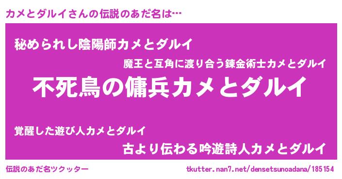 | 欧米人風あだ名 | 『トリンドルカメとダルイ』 |
