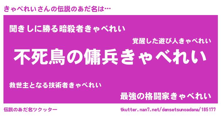 | 男性向けラノベタイトル風あだ名 | 『転生したらきゃべれいだった件』 |
